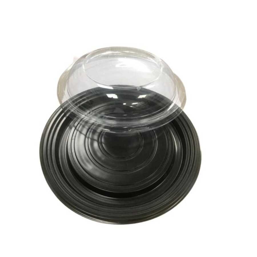 Waffle Kabı Yuvarlak şeklinde, tabanı siyah kapağı şeffaf renkte kapaklı waffle kabı. 22,5 cm ağız çapına ve 4 cm yükseliğe sahiptir. Restaurant ve cafelerin paket servislerinde, catering firmalarının davet ve yemek servislerinde kullanabileceği kaliteli ve sızdırmaz waffle kabıdır. Ürün kapaklı satılmaktadır.
